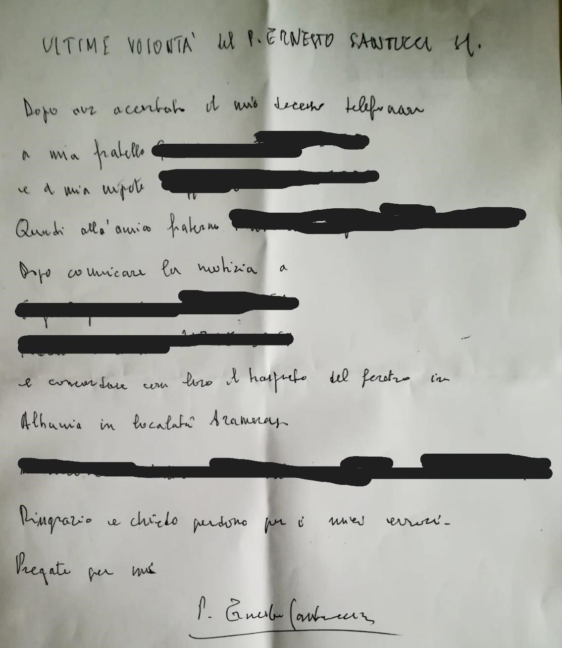 Për fat të keq, nuk ishte e mundur. Eprorët e At Santuccit preferuan ta varrosnin në varrezat e Castel Gandolfo.